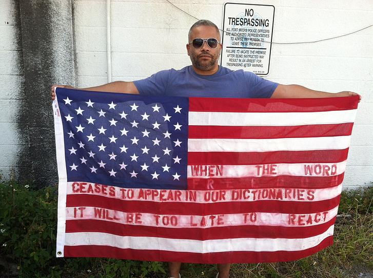 For some reason, it appears that almost all of the participating artists are male. Some, understandably, do not show their faces, as the act of defacing a national flag could be expected in many cases to cause official and/or popular offense. Nevertheless, Guigand’s project is impressive in breadth while remaining very focused on the expression of freedom, and has created hundreds of intriguing and sometimes intimate portraits of artists with their flags.