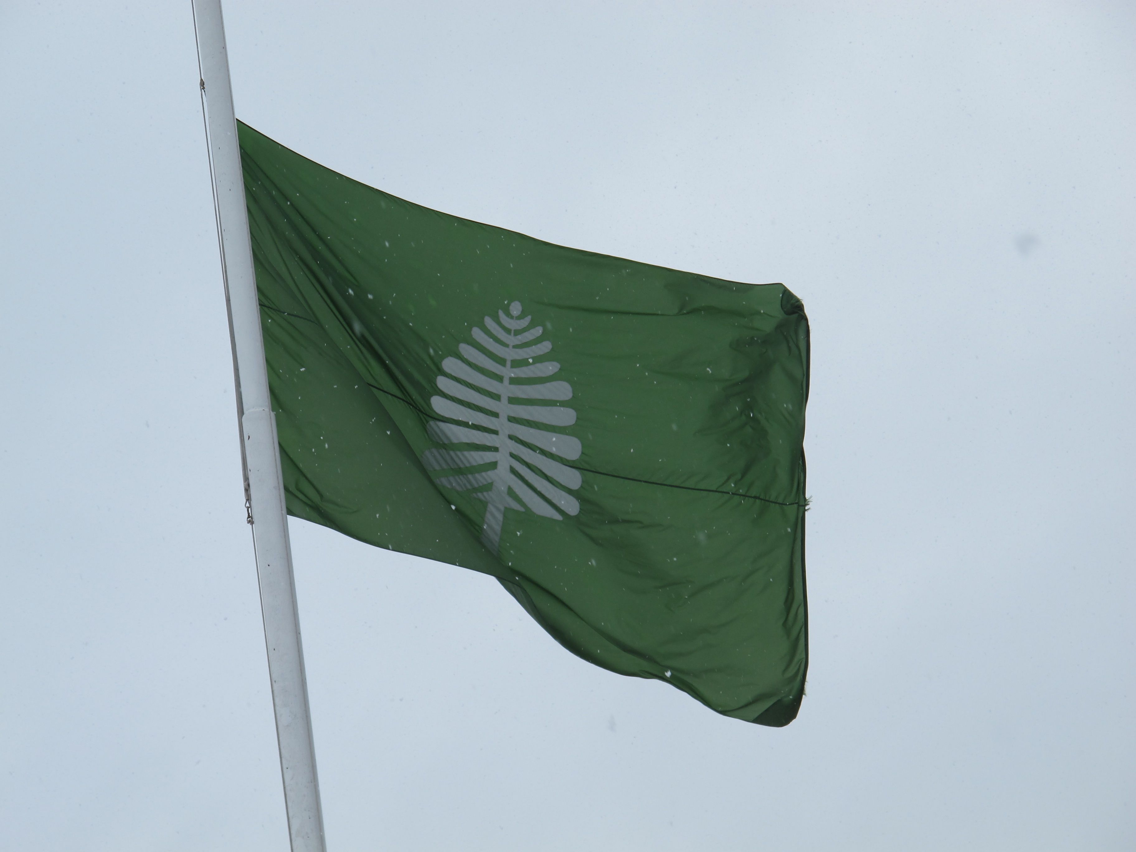 The flag of the Australian territory of Norfolk Island, adopted in 1980. The tree is a Norfolk Island Pine (Araucaria heterophylla), endemic to the island. (Source: Wikipedia)