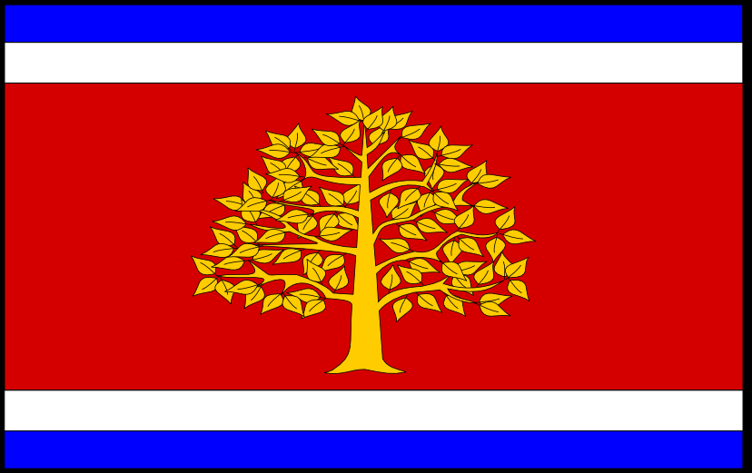 Flag of the Canadian province of Prince Edward Island, adopted 1964. The trees are oaks, the big one on the right representing England, the three saplings on the left the three counties comprising PEI. Source: Wikipedia and FOTW.Town flag of Martvili, Georgia, adopted 2011. The tree, an oak, refers to a large oak used for pagan celebrations that St. Andrew is said to have convinced the locals to cut down. Source: FOTW and www.martvili-sakrebulo.ge.Flag of the Nottinghamshire County Council, England. Source: British County Flags and Wikimedia Commons.City flag of Oakland, California, designed by George Laakso of San Leandro in 1952. Source: FOTW and Wikimedia Commons.Flag of Gernika-Lumo, Basque Country, Spain. The tree is an oak called the Gernikako Arbola, site and symbol of Basque self-government. Source: Wikimedia Commons and Wikipedia.