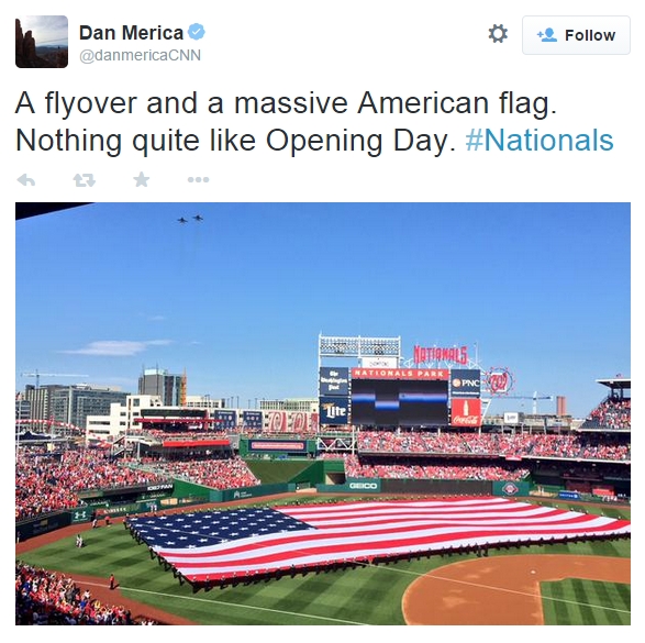 Baseball’s Opening Day Flags Posted on April 6, 2015April 6, 2015 by SDM Spring is really here, now that Major League Baseball has had it’s Opening Day. Across the country it was a pretty flaggy event, as captured by these tweets: Run little green alien. Run. #OpeningDay pic.twitter.com/Gxdj6x5llI — MLB GIFS (@MLBGIFs) April 7, 2015 Share this: Click to email a link to a friend (Opens in new window) Email Click to share on Facebook (Opens in new window) Facebook Click to share on X (Opens in new window) X Click to share on Tumblr (Opens in new window) Tumblr Click to share on Pinterest (Opens in new window) Pinterest Click to share on Reddit (Opens in new window) Reddit Click to print (Opens in new window) Print More Click to share on LinkedIn (Opens in new window) LinkedIn Click to share on Pocket (Opens in new window) Pocket Related