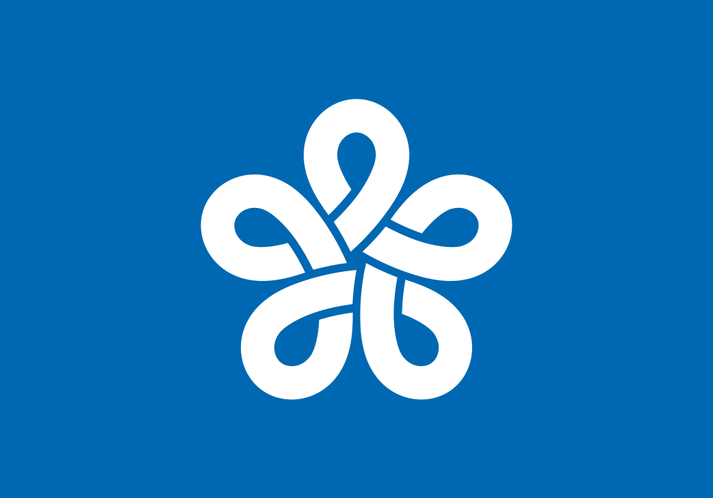 The 4th basic principle of flag design is “no lettering or seals”. Logos generally fall under this category as well. This doesn’t keep lots of flags, particularly of corporations, from having logos on them. And occasionally a logo flag works well as a flag — usually because it obeys all or most of the other four principles (keep it simple, use meaningful symbolism, use 2 or 3 basic colors, and be distinctive or be related).
