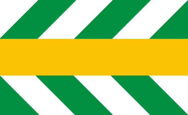 Looking more closely at Douglas-fir sprigs, he noticed that the needles actually branch off alternately from the stem. This led to a second, preferred version. (In heraldic terms, the reversing of colors between the upper and lower green-and-white stripes is called counterchanged.)
