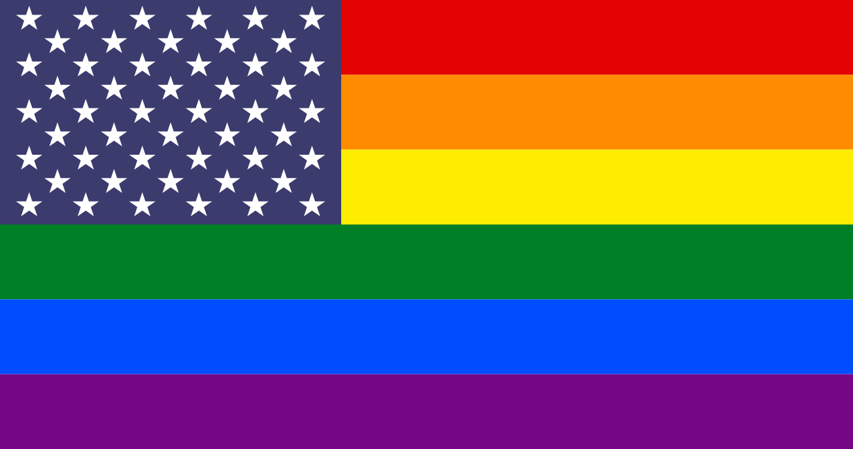 These flags were a regular production item at the Paramount Flag Co. before 1978 and the subsequent adoption of the rainbow as a symbol of Gay Pride. It was popular with the “Rainbow Children” and other similar counter culture groups. It still is, and as they are quick to point out, “They had it first!”. They were used at Rainbow Gatherings. They were also made by Colors of the Wind in Santa Monica in the 1970’s (I think theirs started with a purple stripe). It is called “New Glory” and predated the “Gay Nation” rainbow by at least six years, probably longer. Also available was a “Rainbow” First Navy Jackbefore 1978. — James Ferrigan, 20 August 1999