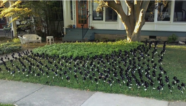 Black pinwheels in yard. AFSC #GazaPinwheels project .