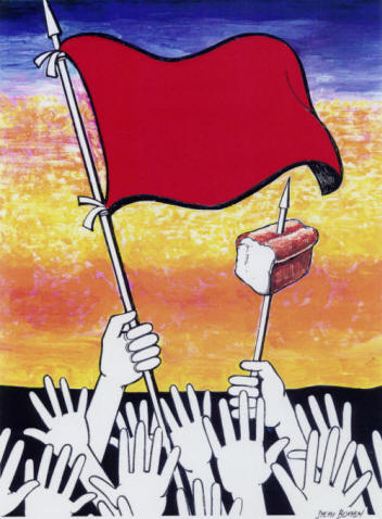 Blood or Bread, the demands of rioters of Merthyr Tydfil, Wales, 1831.  Illustration by Dewi Bowen.