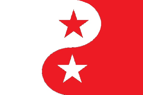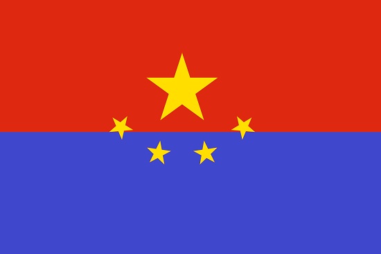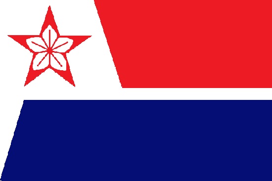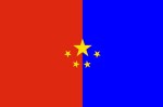 There are waaaaaaaaaay too many curves on this flag. While I think that curves are OK for city flags, I think the stars and the line linking them to the center of the flower are unecessary complications. A flag has to remain simple and one needs to resist the terrible temptation to over charge a flag. I give 6/10 to this flag.