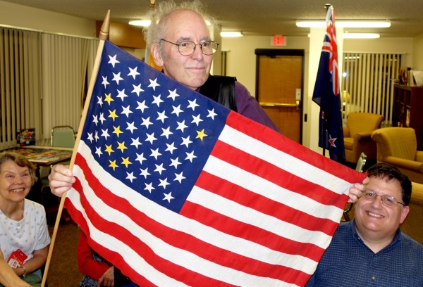Unbeknownst to Mainwaring, Michael Orelove — who lived in Alaska for many years — had already independently created a variant US flag for Alaska, ingeniously highlighting 8 of the 50 stars to form the big dipper.  He gave away this flag at the meeting as part of an ongoing effort to downsize his belongings.