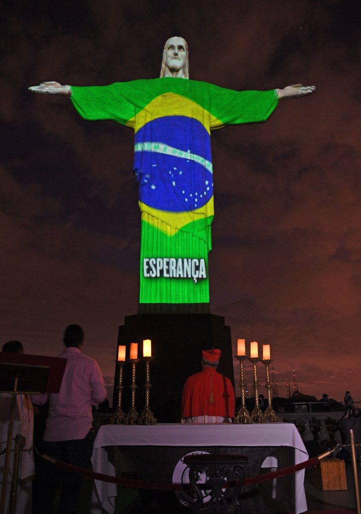18 March. The Catholic Archdiocese of São Sebastião of Rio de Janeiro projected the flags of countries reporting cases of Covid-19 on to the 125 foot Christ the Redeemer statue, producing a globally circulated images. This could be read as an act opposing the Brazilian president who has notably downplayed the pandemic.