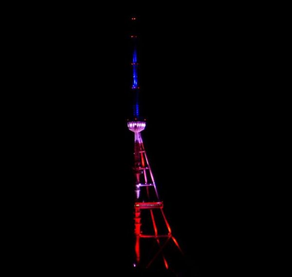 14 April. The TV tower in Tblisi, Georgia is lit with the colors of the French flag as a gesture of solidarity in battling Covid-19. Flags of the UK, the US, Spain, Italy, Turkey, and Azerbaijan have also been used in these displays.