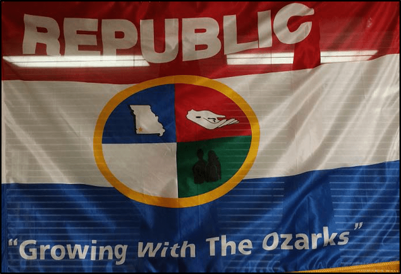 Back in 1991, Republic, Missouri ran a ran a competition to choose a logo to be used on the city seal and the city flag. Marilyn Schexsnayder received $100 for the winning entry, an oval divided into quarters depicting the location of Republic within an outline of Missouri, an outstretched hand, a silhouette of a… Continue reading Republic, Missouri Tries Again